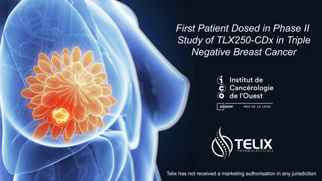 此外,Telix 核心腎癌治療計劃的 TLX250-CDx II 期研究中,第一位患者接受了三陰性乳腺癌(Triple-Negative Breast Cancer, TNBC)潛在適應症擴展研究,旨在評估如何利用正子斷層掃描 (PET) 的CA9影像來診斷和分期 TNBC。 TNBC 的預後比其他乳癌亞型更差,其特徵是侵襲性行為和獨特的轉移模式。由於缺乏針對 TNBC 的標靶治療,且目前的示踪劑效果不佳,因此存在重大未滿足的需求。
