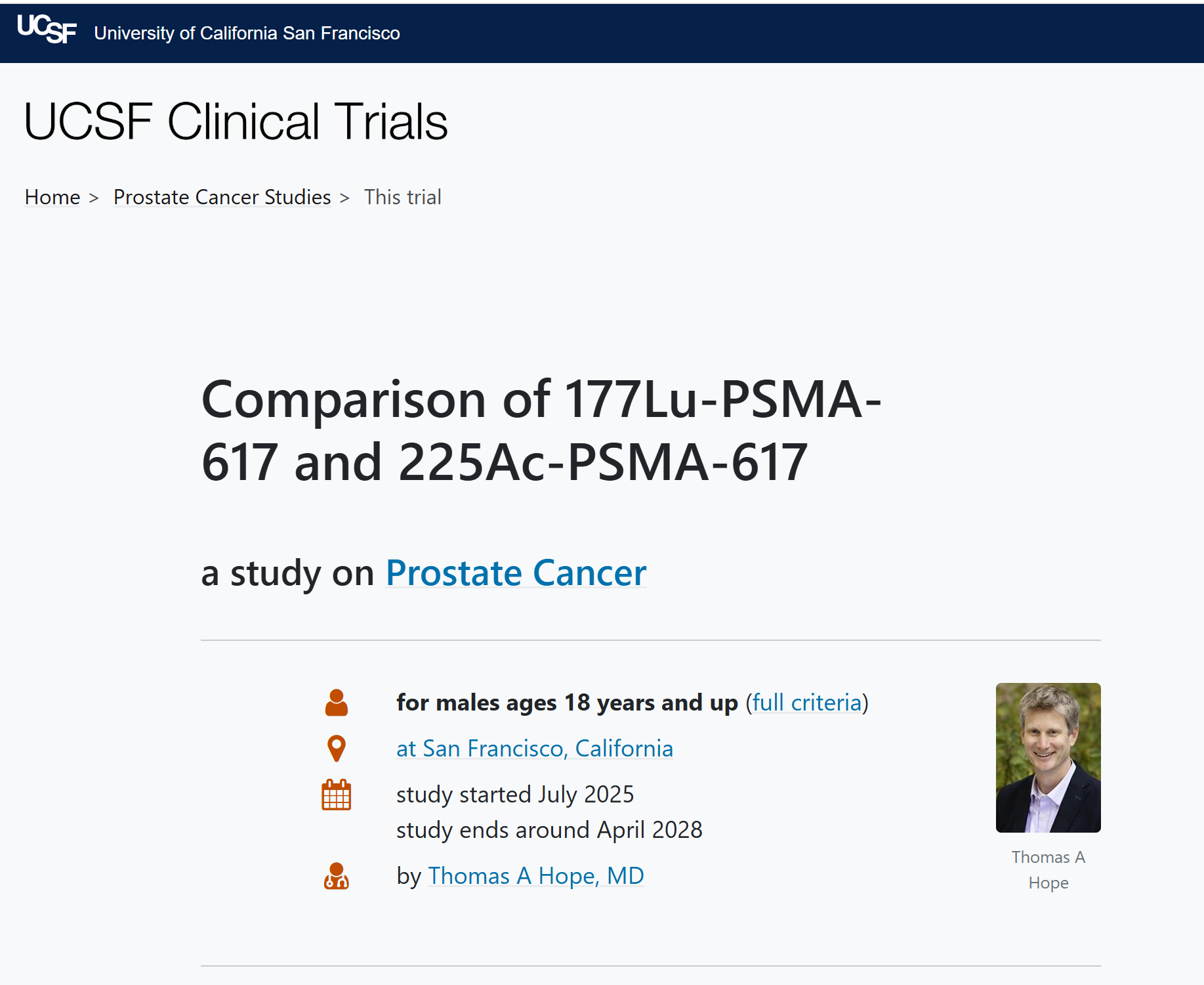 UCSF 目前進行的 NCT07054346 試驗,針對的是尚未手術的高風險局部攝護腺癌患者。這項試驗最引人注目的特點,在於它是一場 Alpha 粒子(225Ac) 與 Beta 粒子(177Lu) 的直球對決。